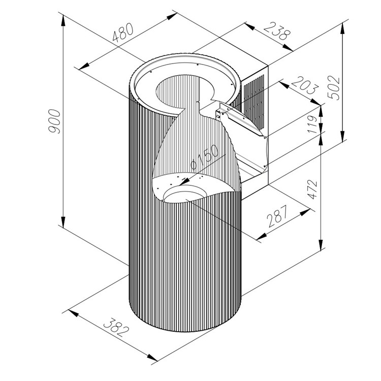 Tekstura od 174 rebra stvara jedinstvenu igru svjetla i sjene, čineći ovu napu apsolutnim središtem pozornosti u svakoj modernoj kuhinji.